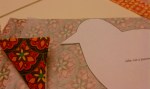3. Pin pattern to felted wool as instructions recommend or to any fabric you choose and cut it out. Then flip the pattern the other direction and cut out the pattern again. This will give you two different sides of the chicken, a mirror image.